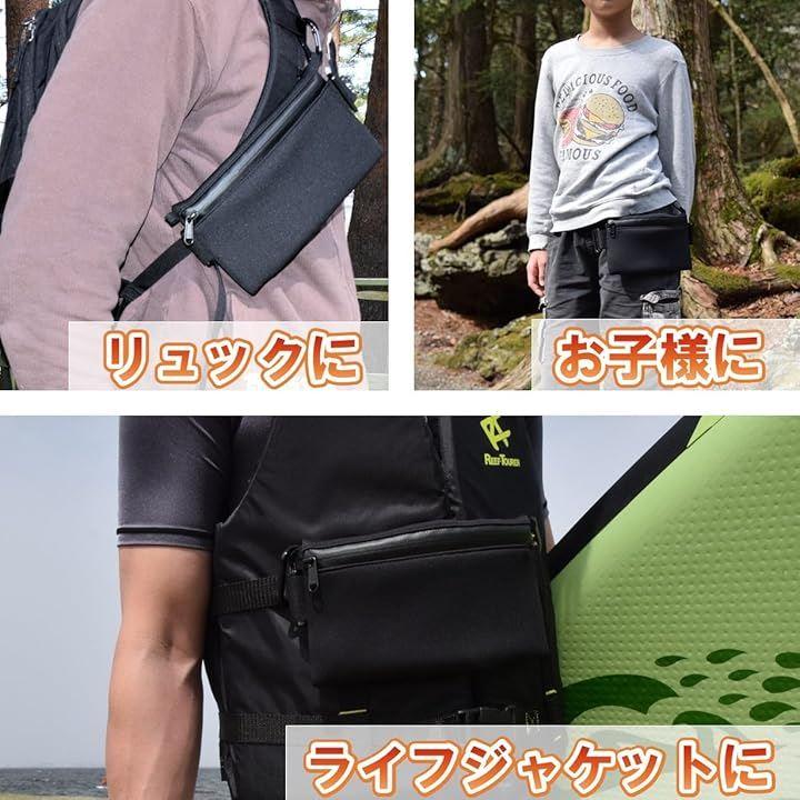 有効なポケットが少ないお子様や、ライフジャケットにエマージェンシー用の小物を保持させる事も可能です。