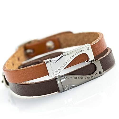 [Close to Me] Closetome Leather Silver Pair Bracelets with Engraved Messages and Swarovski Heart Linking Crystals (Pair of 2)