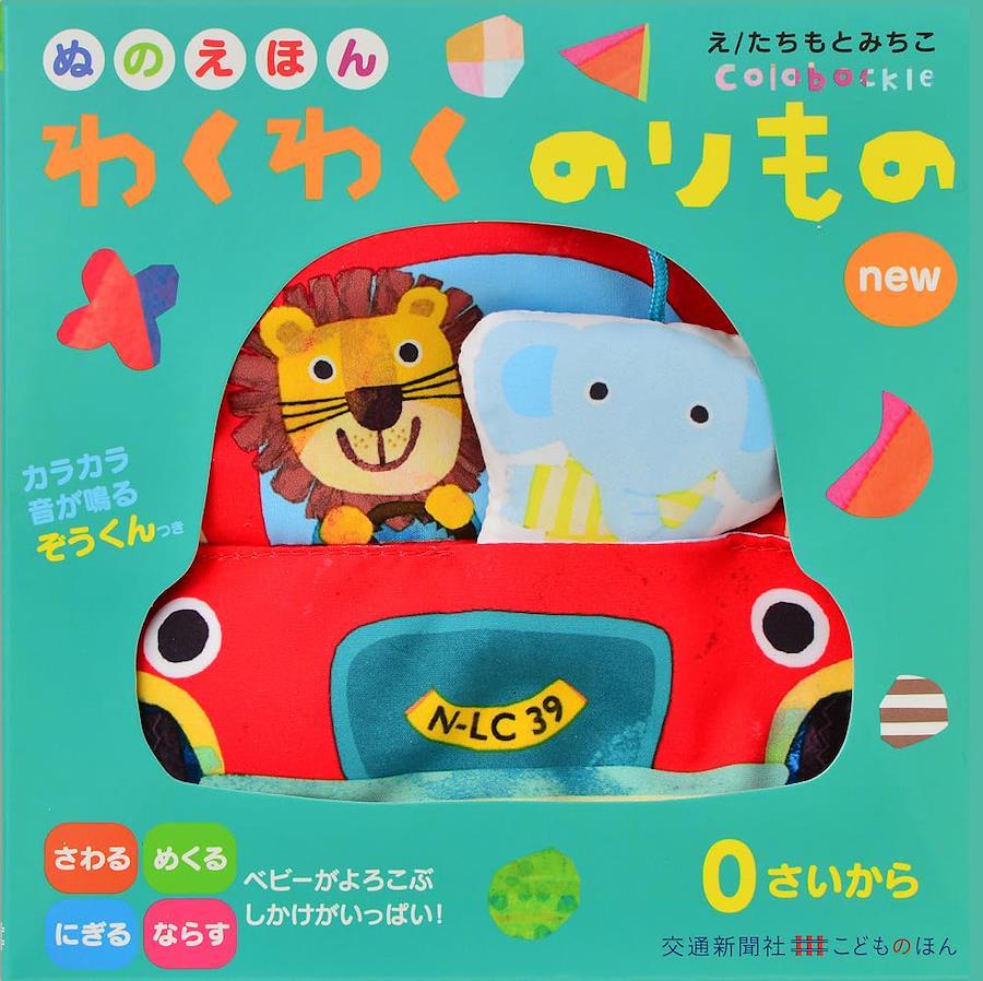 ふって「カラカラ」、にぎって「シャカシャカ」、さわって「ふわふわ」、めくって「パタパタ」……。消防車や電車、飛行機などの「のりもの」をモチーフに、さまざまな仕掛けを盛り込んだ、ベビーのためのファーストブックです。汚れたら、お洗濯もできるので安心。赤ちゃんのいるご家庭へのプレゼントに最適です。『ぬのえほん わくわくのりもの』(2018年発行)のパッケージを一新した商品です。