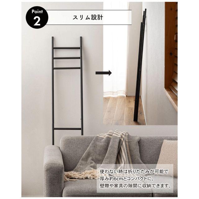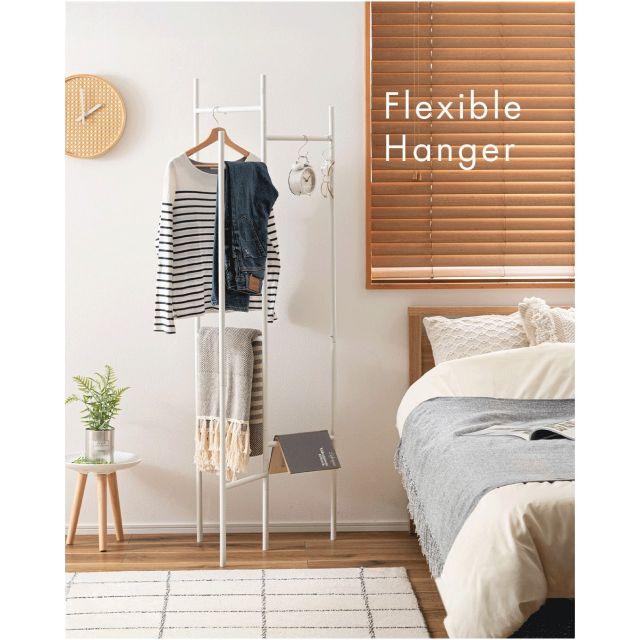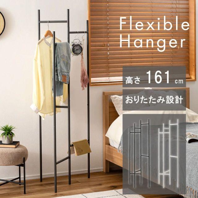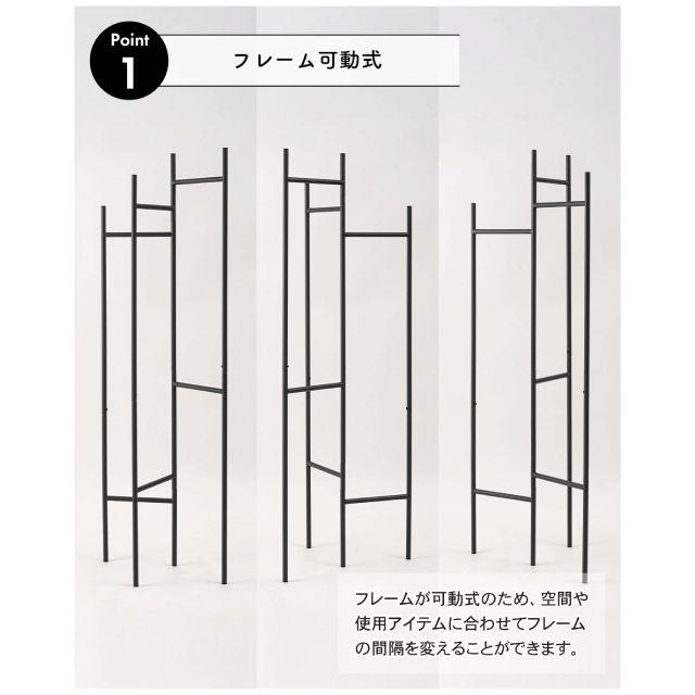 ●ミニマルデザインのスタイリッシュハンガー。●圧迫感を感じさせないスリムな形状で、すっきりと見せてくれるハンガー。●フレームは可動式なので、掛けるものや空間に合わせて調整することができます。●使わない時は畳んで省スペースに収納可能。●可動式のフレームは空間や使用アイテムに合わせてフレームの間隔を変えることができます。●使わない時は折り畳み可能。厚さ約6cmとコンパクトに。●壁際や家具の隙間に収納できます。●ハンガー部分が段違いになっているため、アイテムの大きさや種類に合わせて効率収納。●フレームは光沢を抑えたマットな質感。●様々なインテリアと相性が良く、空間を上品な印象に。〈製品規格〉商品サイズ:W58×D30×H161商品重量:4.0kg静的耐荷重:10kg材質:スチール(粉体塗装)組立:組立式原産地:中国
