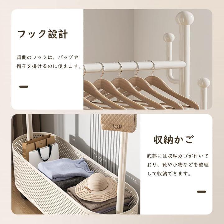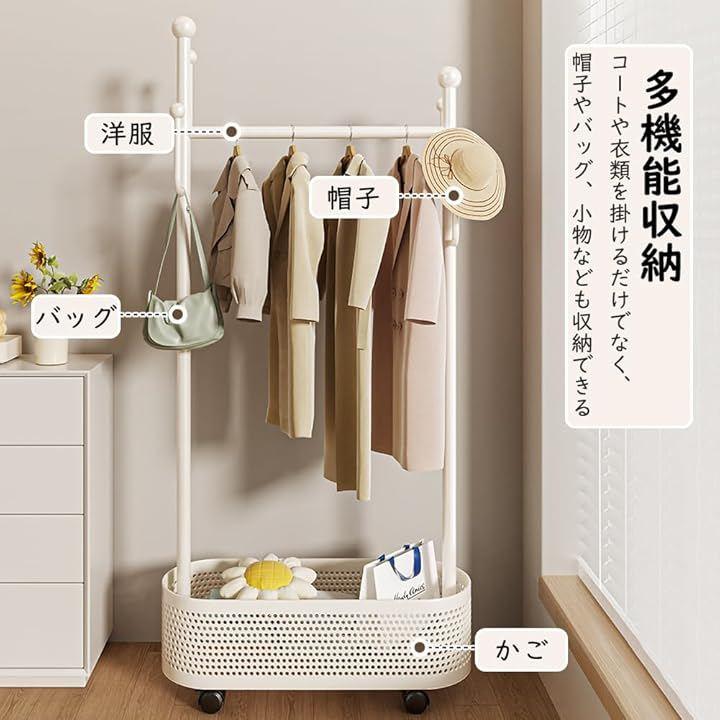 「多機能収納」コートや衣類を掛けるだけでなく、帽子やバッグを掛けたり、収納ケースや靴、カバン、タオル、布団、小物なども収納できます。