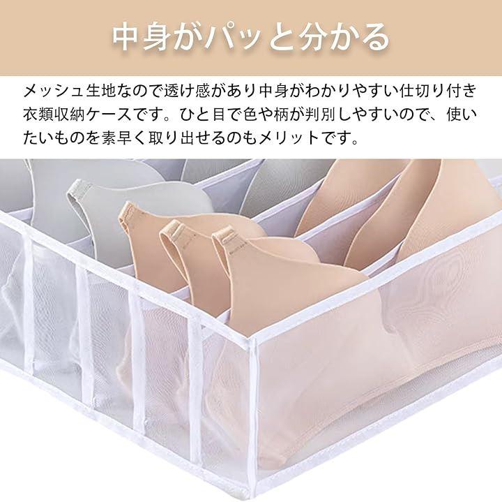 メッシュ生地なので透け感があり中身がわかりやすい仕切り付き衣類収納ケースです。