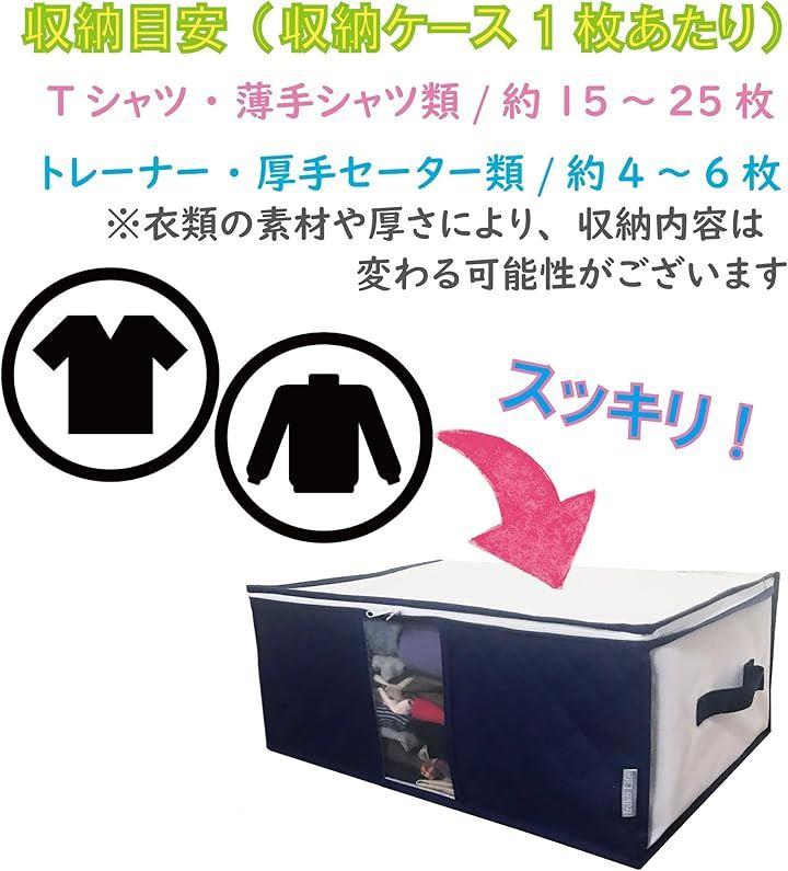 収納目安(ケース1枚あたり):Tシャツ/薄手シャツ類 約15~25枚トレーナー/厚手セーター類 約4~6枚 *収納する衣類などの厚みなどにより収納量は変わる可能性がございます