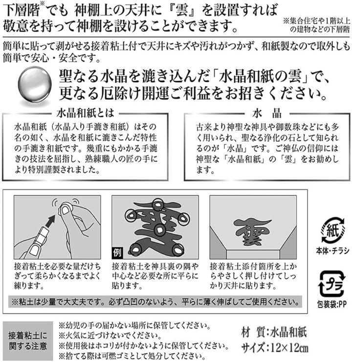 「雲の由来」神棚や仏壇の上、天井に「雲」という切り文字を貼る風習です。