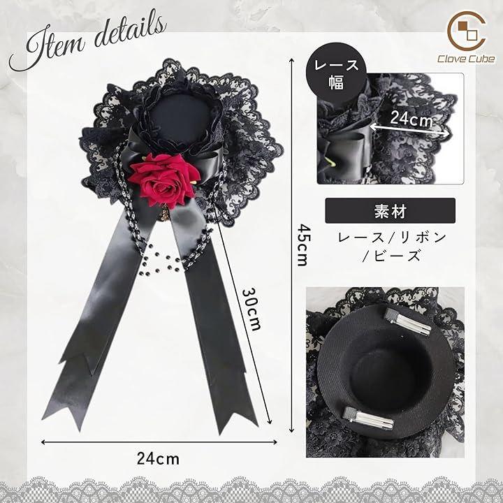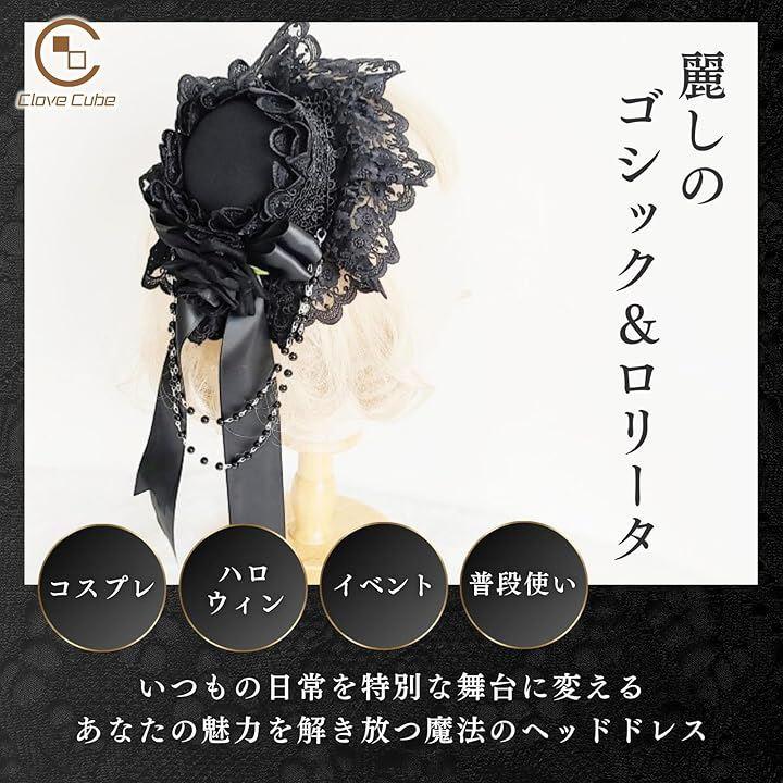 ロリータ&ゴシックファッションに最適:上品なレースと薔薇モチーフが、華やかで個性的なヘアスタイルを演出します。