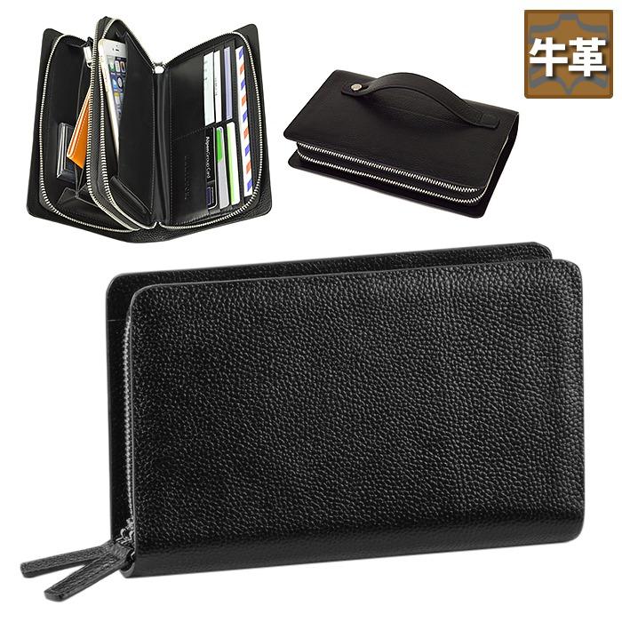 Clutch bag second bag men's small wedding genuine leather double zipper brand clutch back mini clutch second bag back pouch formal bag formal clothes black organizer wallet # 25872