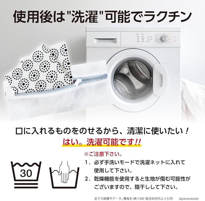 **洗濯可能ですが、洗濯ネットをご使用頂き、手洗いモードでご利用下さい。