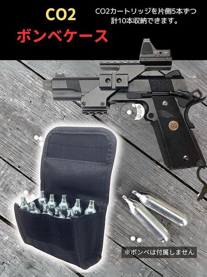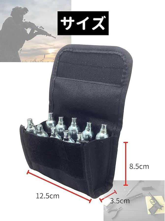 CO2カートリッジ12グラムまたは 8グラムを収納可能なCO2ボンベをスマートに携行できるポーチです。