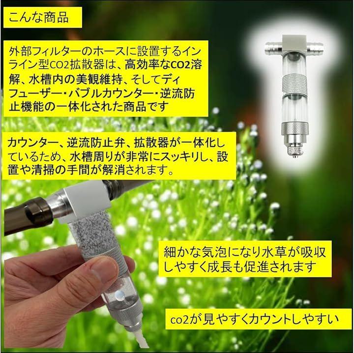 「選べる2サイズ12mm/16mm」水草水槽 水槽用 CO2 拡散器 インライン型 販売。ディフューザー インライン型ディフューザー バブルカウンター 外部 強制添加 外部強制添加 CO2拡散器 にてご使用ください。