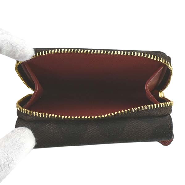 Coach Factory Outlet COACH FACTORY Signature Tri-fold Wallet Mini Wallet Compact Wallet 7331 IMRVQ Red + Brown