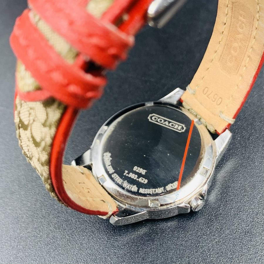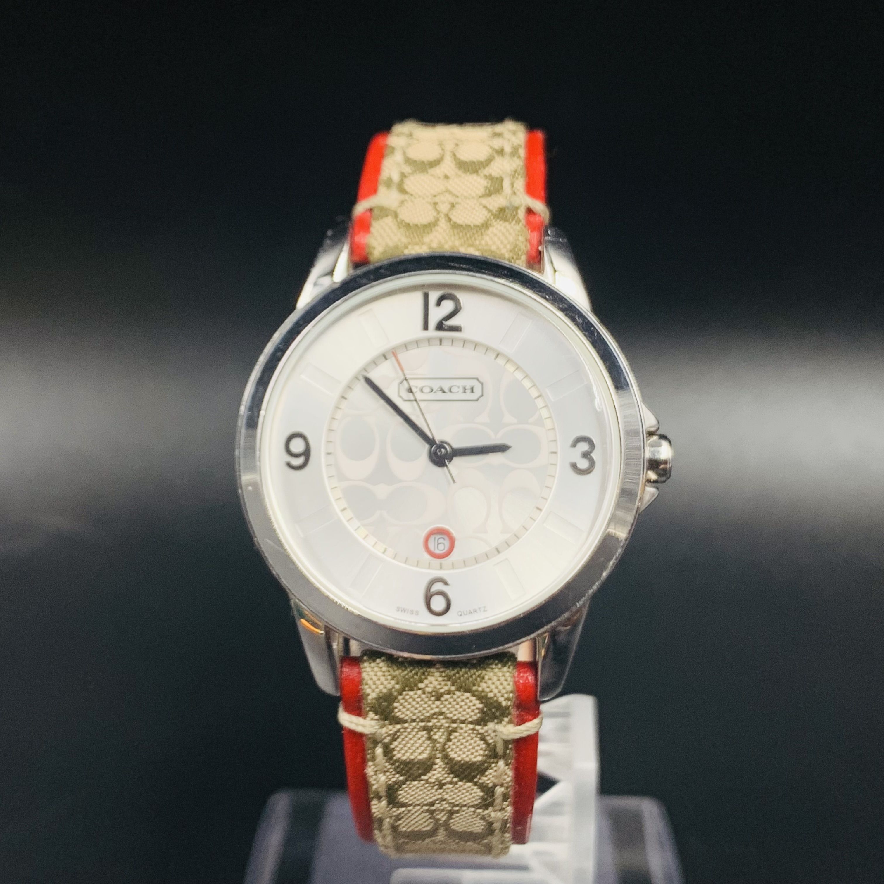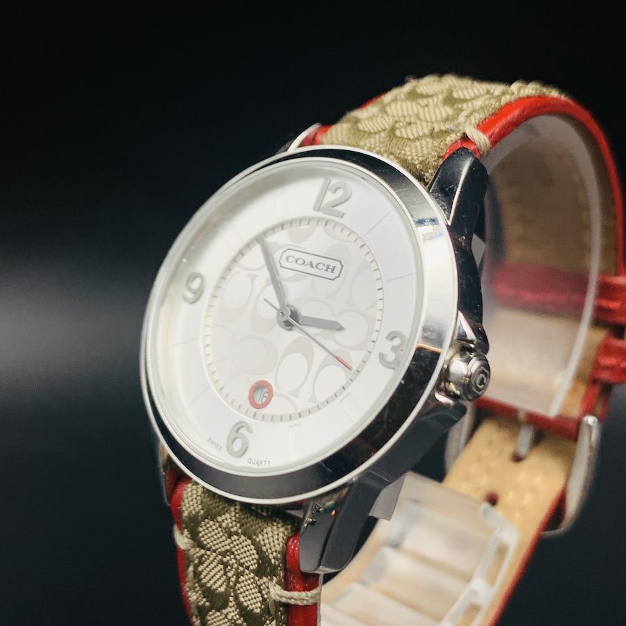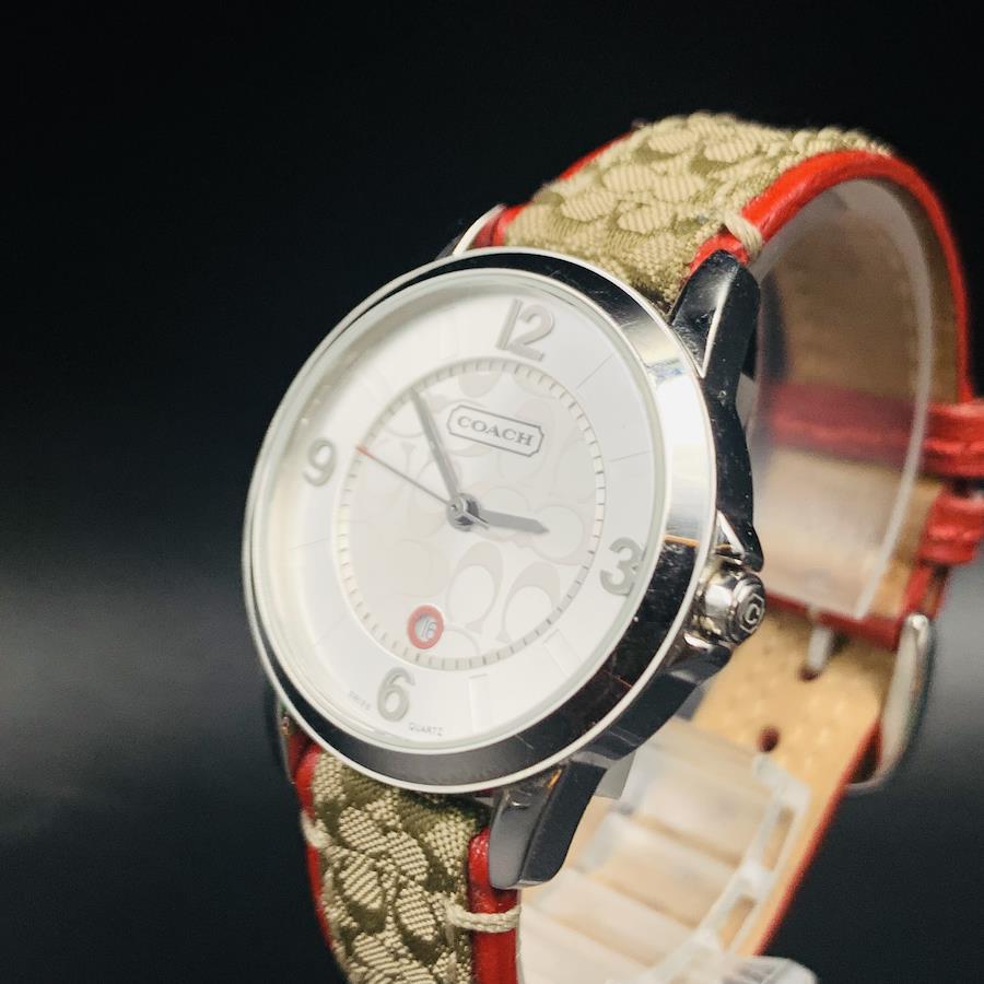 coach 腕時計 クォーツ シグネチャー 赤 レッド レザー