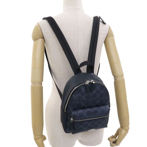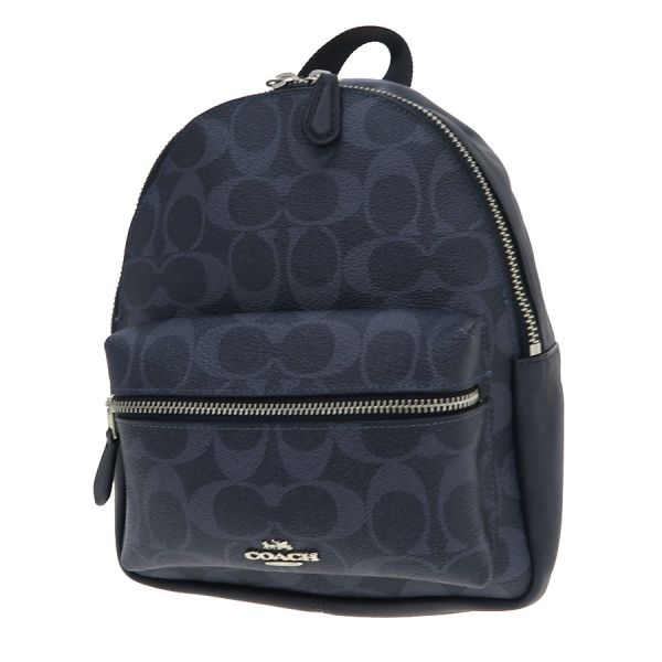 コーチ・シグネチャー バックパック ミニのご紹介です☆ 定番シグネチャー×レザーのミニリュック。小振りで可愛く、ちょっとした荷物であれば十分に収納出来る人気アイテム♪型崩れ、表面と内側の薄汚れ、中タグのスレ、レザーのシワ感、ショルダーや角等の縁にスレが少々、金具の小傷くすみは見受けられますが致命的なダメージはなく、これからも長く愛用出来ますよ!カジュアルスタイルにピッタリ!!