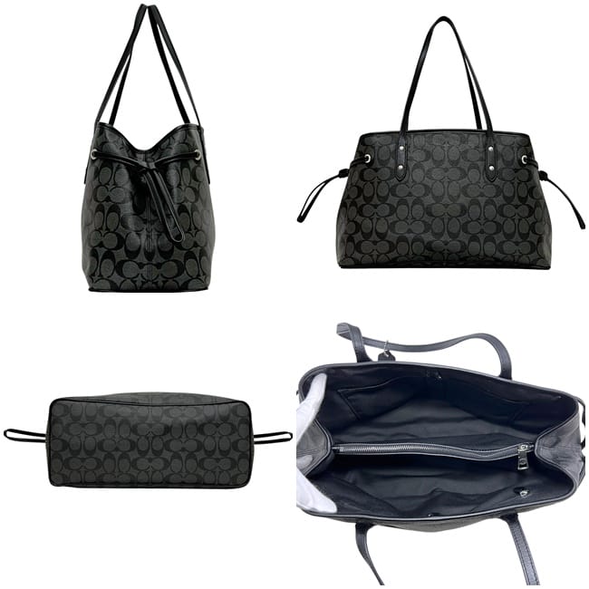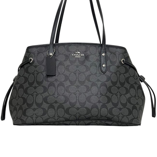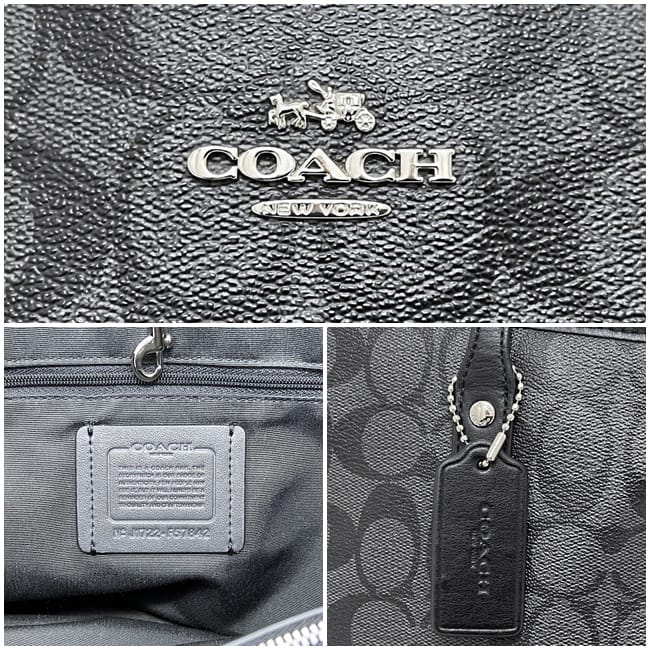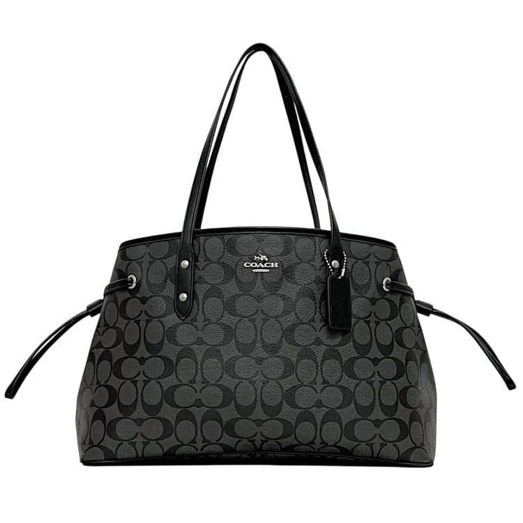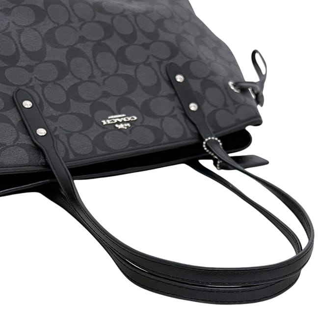 ☆---- 商品について ----☆コーチ トートバッグ ブラック グレー 黒 灰色 シグネチャー F57842 チャーム付 PVC レザー 中古 COACH