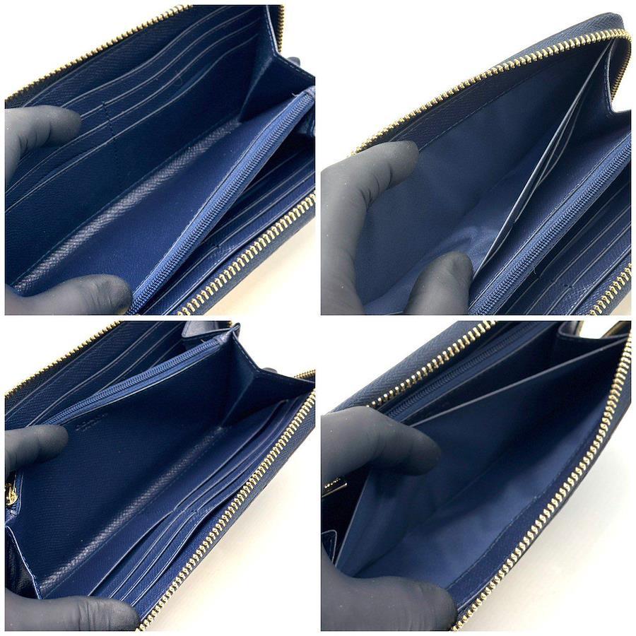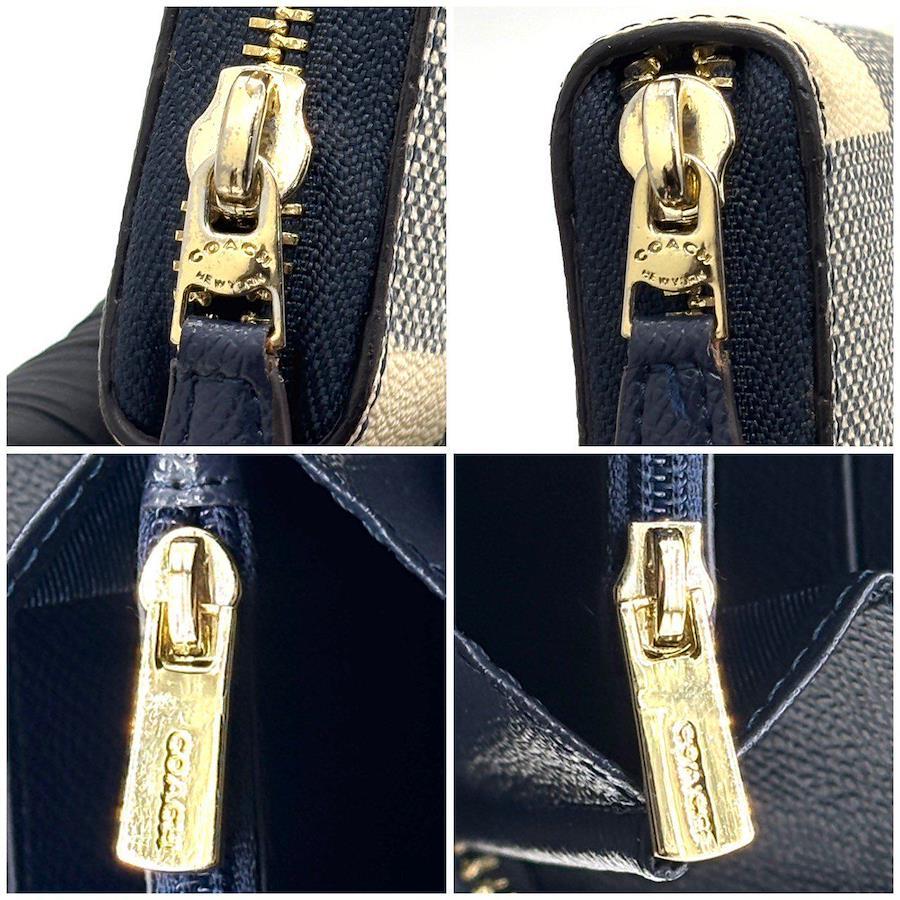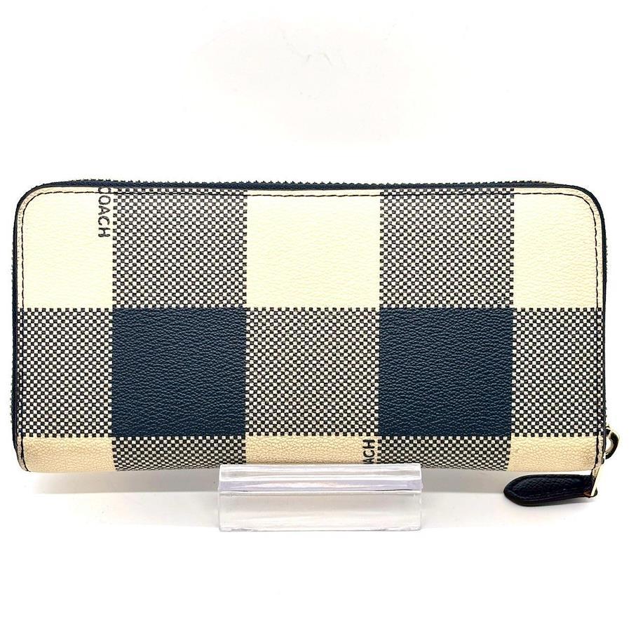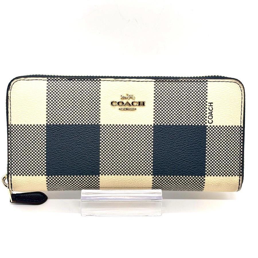 【商品説明】・上品さと可愛さを両立したCOACHのチェック柄ラウンド長財布。ネイビー×クリームの大人配色が魅力で、バッグの中でもひと目で映えます。カード段が多く収納力が高いのも嬉しいポイント。使いやすいラウンドファスナーで通勤・通学にも最適。
