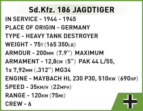 強力なヤークトティーガー戦車駆逐艦のモデルは、1280個の要素を使用して1:28スケールで開発され、長さは38cmです。 大型モデルにより、車内のパーツのデザインも可能になりました。 このモデルは、取り外し可能なレンガ造りのエンジンがあるサービスハッチへのアクセスを提供します。 その他の機能として、横に動かすことができる大砲、乗組員のハッチや作業トラックへのアクセスなどがあります。 このモデルは、歴史的なマーキングと詳細を示す高品質で耐久性のあるプリントを使用しています。 このような巨大なモデルは、何時間もエキサイティングな構造を提供し、あなたのコレクションの中で目立つ展示品になるでしょう。 このセットには、駆逐戦車指揮官のフィギュアと、車両名が印刷されたレンガも含まれています。 COBIで1つずつ歴史を築きましょう。 Panzerj?ger Tiger Ausf。 Jagdtigerとしても知られるBは、第二次世界大戦中に戦闘で使用された最も強力な車両の1つでした。 ヤークトタイガーは有名なタイガーIIタンクのシャーシをベースにしています。 その主な武装は強力な128mm Pak 44 L/55対戦車砲で、連合国やソビエトの戦車を破壊することができました。 船体前面の装甲の厚さは最大250mmで、ほとんどの敵に対して優れた保護を提供しました。 ヤークトティーガーの生産は1943年に始まり、1944年に最初に完成したユニットが正面に届けられました。 ヤークトティーガーは非常に印象的な駆逐戦車でした。 その巨大な火力と厚い装甲は恐ろしい敵になりました。 今日では、第二次世界大戦で最も有名で研究されている車両の1つです。