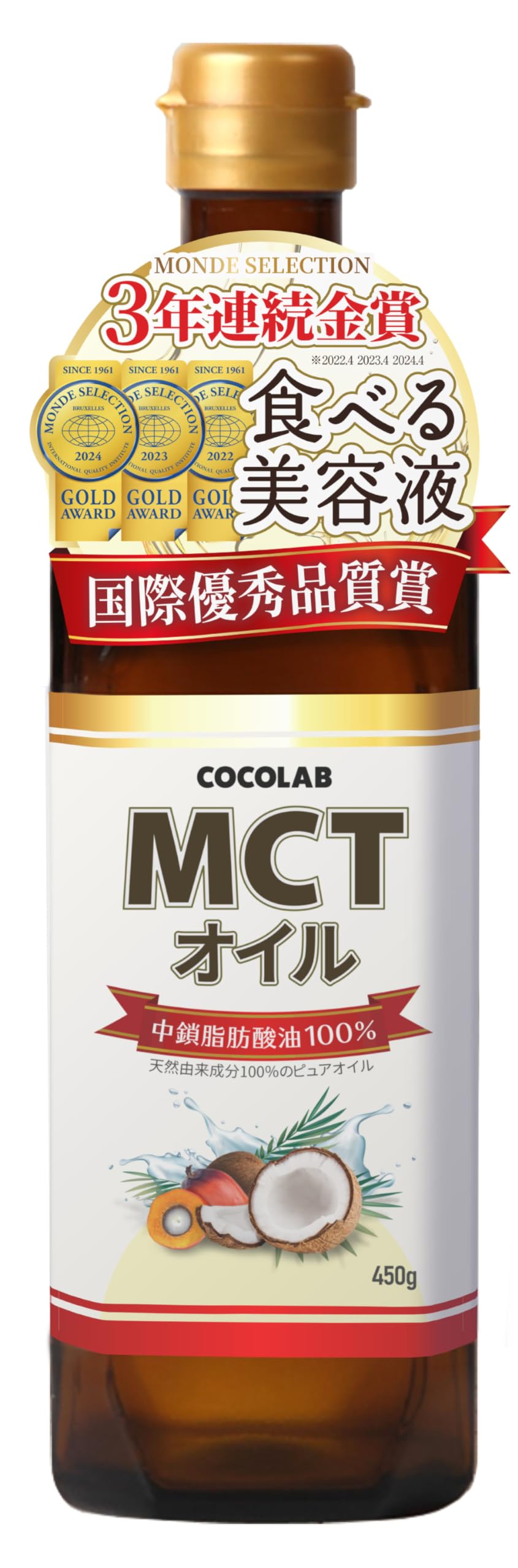 ?【内容量】450g ?【原材料】ヤシの実由来100% ?【安心保障】万が一輸送中に漏れ・破損があった場合は、100%保証いたしますのでご安心ください。 ?MCTオイル (中鎖脂肪酸)はココナッツや母乳などに含まれる天然成分。中鎖脂肪酸のみを贅沢に100%抽出した純度100%のピュアオイルです。一般の食物油とは消化経路が異なり、すぐにエネルギーとして利用されやすく、体脂肪になりにくいという特徴があります。 ?【安心安全な国産工場】GMP適合認定証を取得している安心・安全な日本国内の工場で製造しております。GMPとはGood Manufacturing Practice(適正製造規範)の略で、原材料の受け入れから製造・出荷まで全ての過程において製品が安全に作られ、「一定の品質」が保たれるようにするための製造工程管理基準です。また当工場は「東日本食品包装工業会」の正会員でもあり食品包装業界の発展にも協力しております。体に入れるものだからこそ原材料の輸入元での品質チェックだけではなく、輸入後に当工場にて再度チェックを行い、徹底的に厳しい品質管理を行っております。 ?【60年以上続いている老舗企業による開発】 信頼の印である「ISO22000」「HACCP認証」「コーシャ認証」「ハラル認証」「RSPO認証」など様々な認証を取得している老舗企業と共同開発したMCTオイルになります。創立者自らが足を使って数えきれないほど多くの製造元を探し回り、高品質でリーズナブルな製品の開発に成功しました。 ?【おすすめの摂取方法】無味無臭なので色々な料理や飲み物に混ぜて摂取できます。おすすめの摂取方法としてはコーヒー・豆乳・サラダ・味噌汁・ヨーグルト・ドレッシングなどに入れていただくことです。某ベストセラー書籍では オーガニックコーヒー にMCTオイルと グラスフェッドバター ( 無塩バター )を混ぜて使った 完全無欠コーヒー ( 完全無欠珈琲 )が話題になりました。?【保存方法】常温で暗所に保管してください。?体質によっては少量でもお腹がゆるくなることがございますので、初めてのご使用は小さじ1杯程度から徐々に増やすようにしてください。(とろみ調整)