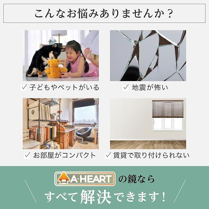 「皆様のお悩み解決」クローゼットのドアに貼りたい、落下して飛散するのが怖い、賃貸住宅に壁掛け鏡を設置したいけどできない、などお悩みと不安を解決する鏡です。
