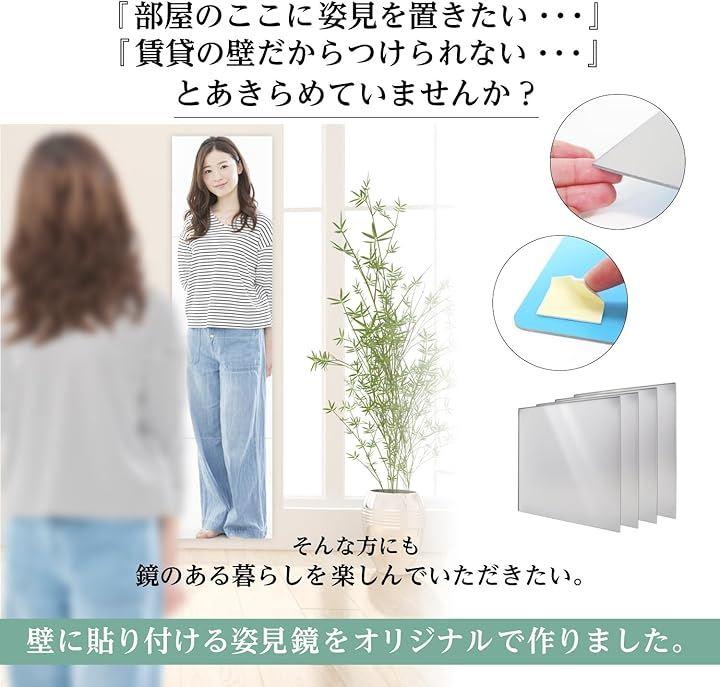 「皆様のお悩み解決」クローゼットのドアに貼りたい、落下して飛散するのが怖い、とがった角でけがをしそう、賃貸住宅に壁掛け鏡を設置したいけどできない、などお悩みと不安を解決する鏡です。