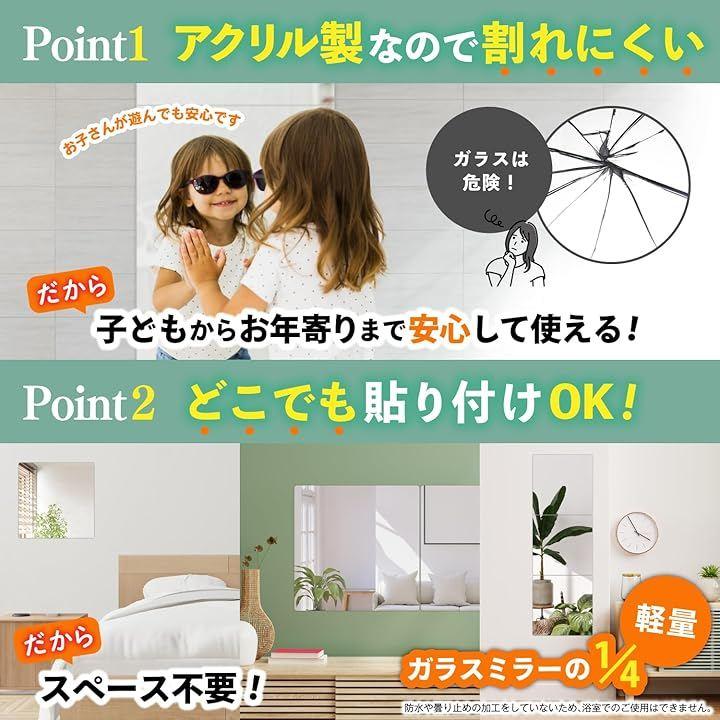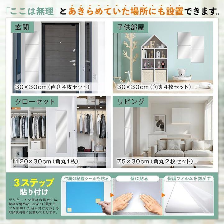 「皆様のお悩み解決」クローゼットのドアに貼りたい、落下して飛散するのが怖い、賃貸住宅に壁掛け鏡を設置したいけどできない、などお悩みと不安を解決する鏡です。