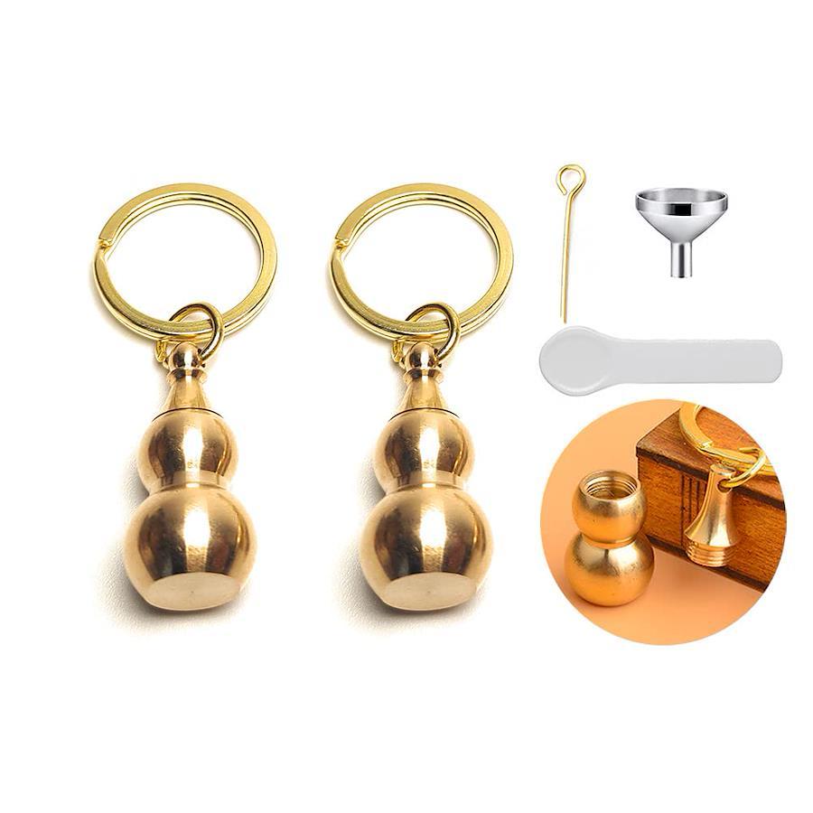 CODEKALA ひょうたんキーホルダー スタッシュジャーキット 真鍮製 防水 小型ピルホルダー スプーン 金属製ミニ漏斗 アウトドア 旅行 キャンプ用, ブラス, Small