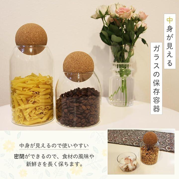 「商品詳細」 材質:ホウケイ酸ガラス+コルク サイズ4種(500ml、800ml、1000ml、3個セット)