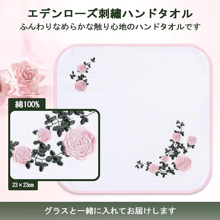 「特別なギフトセットで、開けた瞬間から喜びを」高級感のある専用ギフトボックスに、エデンローズ刺繍のハンドタオルをセット。