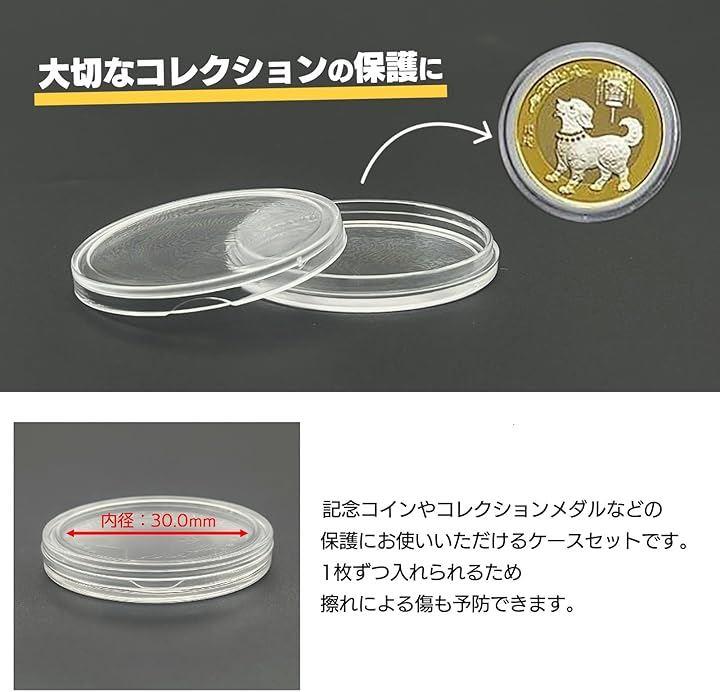 「サイズ」内径30mmまでのコインに対応しており、さまざまなサイズの記念コインやメダルの保護に適したコインカプセルケースセットです。