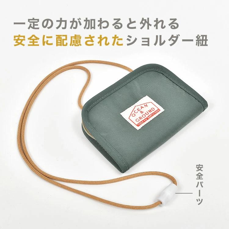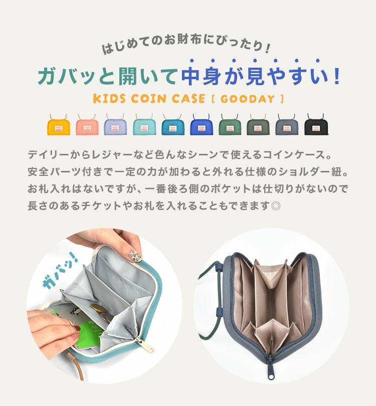 【コインケース / GOODAY】デイリーからレジャーなど色んなシーンで使えるOcean&Groundのコインケース。安全パーツ付きで一定の力が加わると外れる仕様のショルダー紐付き。お札入れはないですが、一番後ろ側のポケットは仕切りがないので長さのあるチケットやお札を入れることもできます◎初めてのお財布にぴったりの使いやすいコインケースです♪