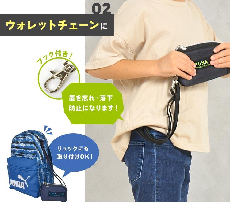 【コインケース】メタルパーツとマット調のコーティング生地がかっこいいPUMA(プーマ)のラージコインポケットウォレット!小銭入れが大きく開いて出し入れしやすいお財布です。カードポケットも8つ付いているので、通学に便利♪長さ調節できるストラップで持ち方を選べるのがポイント!ショルダーベルトやウォレットチェーンに変身します◎