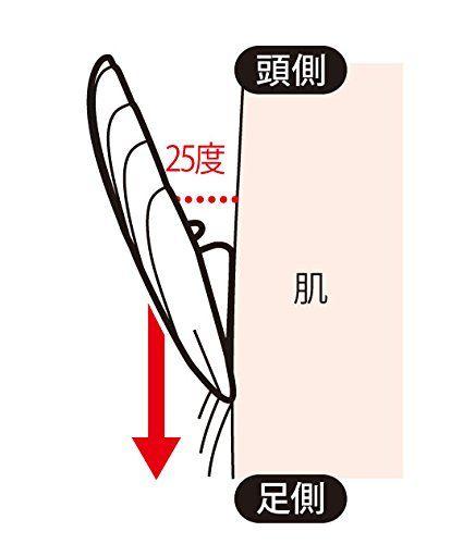 チクチクにサヨナラ!はみ出し突き出し肌トラブルアンダーヘアケアソルシェル幅広コーム形状衛生的な替刃対応約25度のガイド付約25度の角度でヘアをとかすだけ。頭側25度肌足側毛先をカットせず細く削ぐので、チクチクしにくく処理も簡単!使用方法●事前にどのくらいカットするかを決め、2~3回テストしてからご使用ください。その後、肌に対してヘアをなでつけ、ヘアの生えている方向に添って、クシですくようにご使用ください。●ご使用前にヘアの流れを整え、乾いた状態でご使用ください。濡れたまま使用するとヘアがまとまってしまい、目詰まりしやすくなります。※毛質の硬い方は事前にヘアトリートメントなどでケアしてください。●毛先がやわらかくなる角度は約25度が目安です。本品にはガイドが付いていますので、肌にガイドをあてた状態でご使用ください。替刃の取り換え方法●刃は両刃になっています。片刃が切れにくくなった場合は、反対側の刃をセットしてご使用ください。●右図のように裏面のツメを押しながら本体を開き、刃を取り換えてください。●万一、刃先が破損したり、異常が見つかった場合は、必ず新しい替え刃と交換してください。●替刃は、市販の両刃タイプをご使用ください。