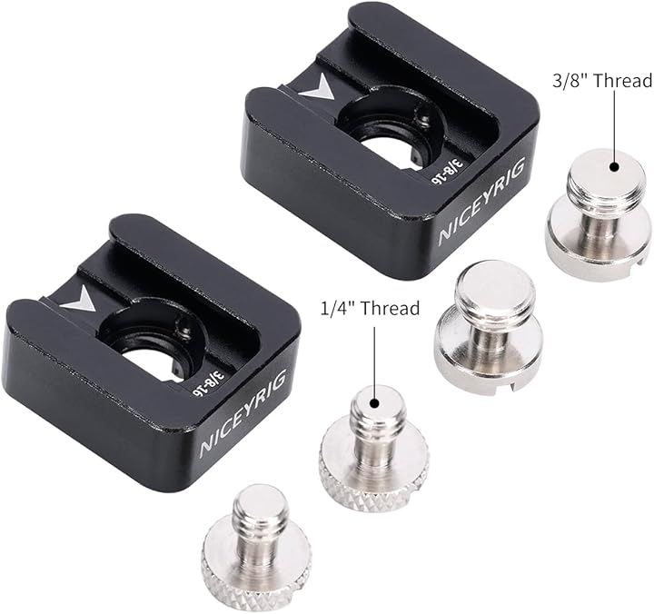 2個セット・必要なネジ類を同梱ーーコールドシューマウント本体x2、1/4インチネジx2、3/8インチネジx2をセットにした実用的な構成。