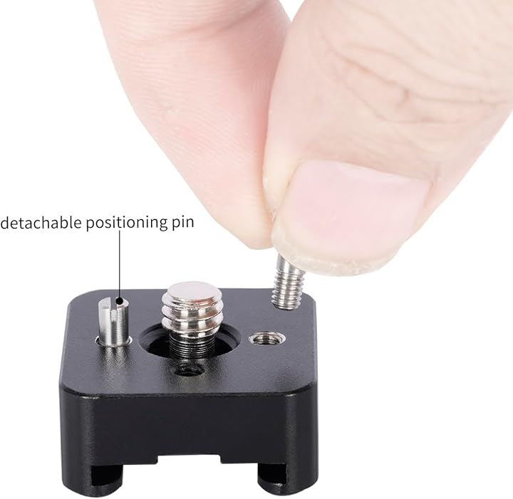 着脱式ARRI位置決めピン・安定性を重視する撮影にーー 位置決めピンは着脱式設計を採用し、ARRI規格対応アダプターにはピンを装着することで回転やズレを防止し、通常のネジ穴機材ではピンを外して使用可能。