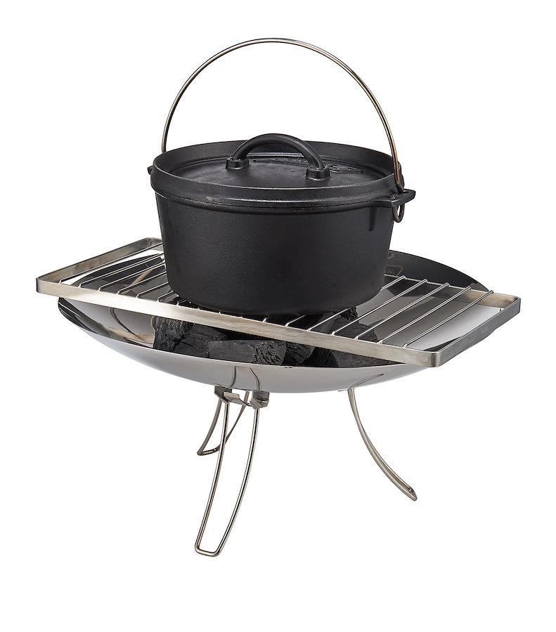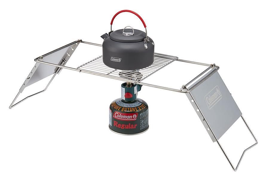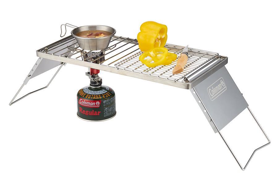 【料理と準備を同時に】シングルバーナーと組み合わせて料理や湯沸かしのキッチン台にもなる。調理台から小物置きまで活躍する安定感抜群のプレート。【取り外し可能な五徳】五徳を取り外して、焚き火台の上で使用可能。【耐荷重約20kg】脚がしっかり固定された状態でダッチオーブンの使用可能。【サイズ】使用時:約72×21.5×12~20(h)cm/重量:約1.75kg【付属品】焼き網、キャリーケース