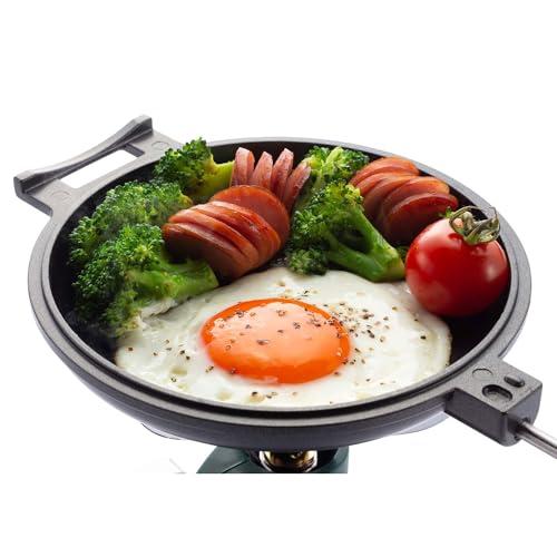 【キャンプに活躍】アウトドア料理が充実。ソロに使いやすいコンパクトなフライパン。【コンパクト収納】取り外し可能なハンドルでコンパクト収納。お皿としても使える。【2つのフライパン】ホットサンドも作れる。上下を分けると、2つのフライパンとしても使える。【焼き印】ランタンマークの焼き印付き。【付属品】収納ケース