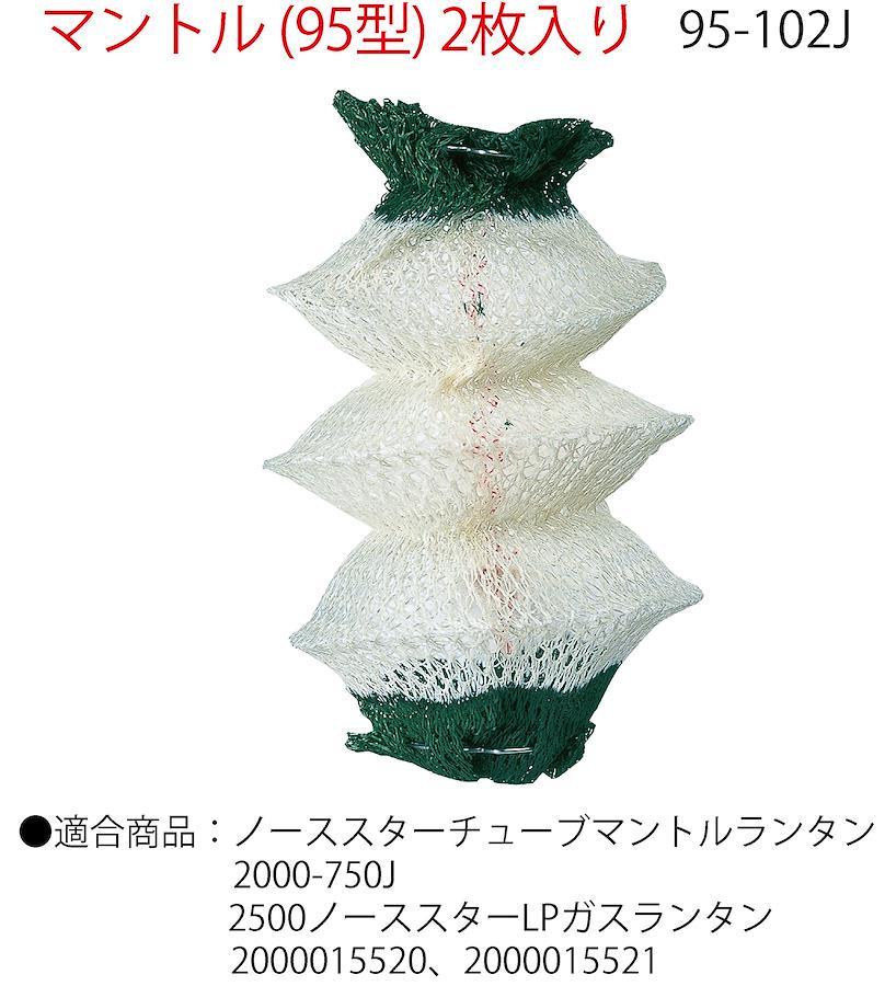 マントルはランタンによって異なります。各ランタン指定のマントルについては取扱い説明書をご覧ください。2枚入りノーススターランタン用マントルノーススターランタンの2000、2500シリーズに適合したマントル上下のワイヤーをひねって固定するだけの簡単セッティング不測の事態に備えて、予備を常備しておくのがおススメ