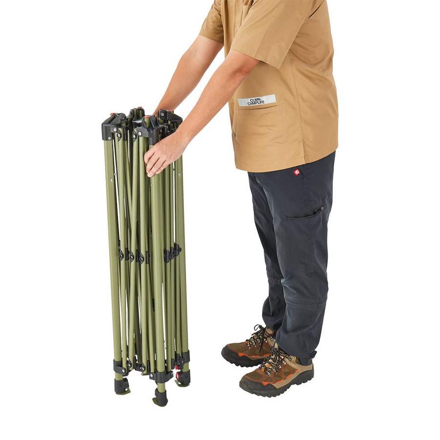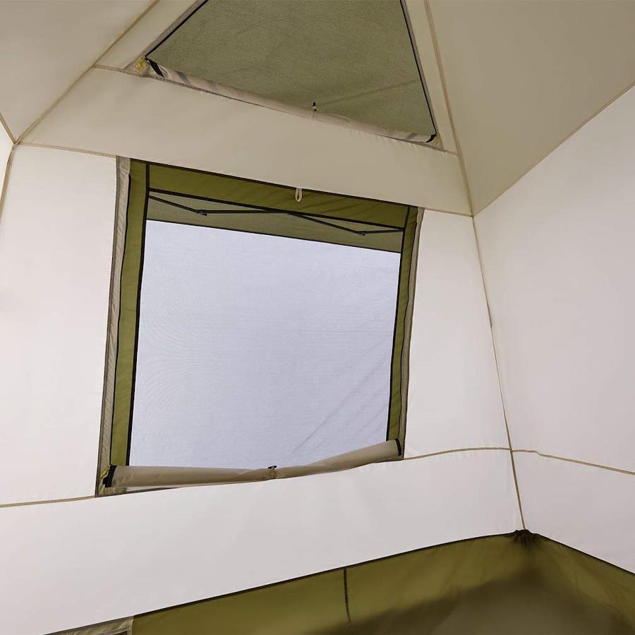 ・広げるだけの簡単組立・吊り下げ式テントで日中はシェードとして夜はテントとして使用可能・垂直に立ち上がった広々室内空間・横窓装備で通気性抜群の3面メッシュ・天井の大きなベンチレーションで熱気を解放して涼しく
