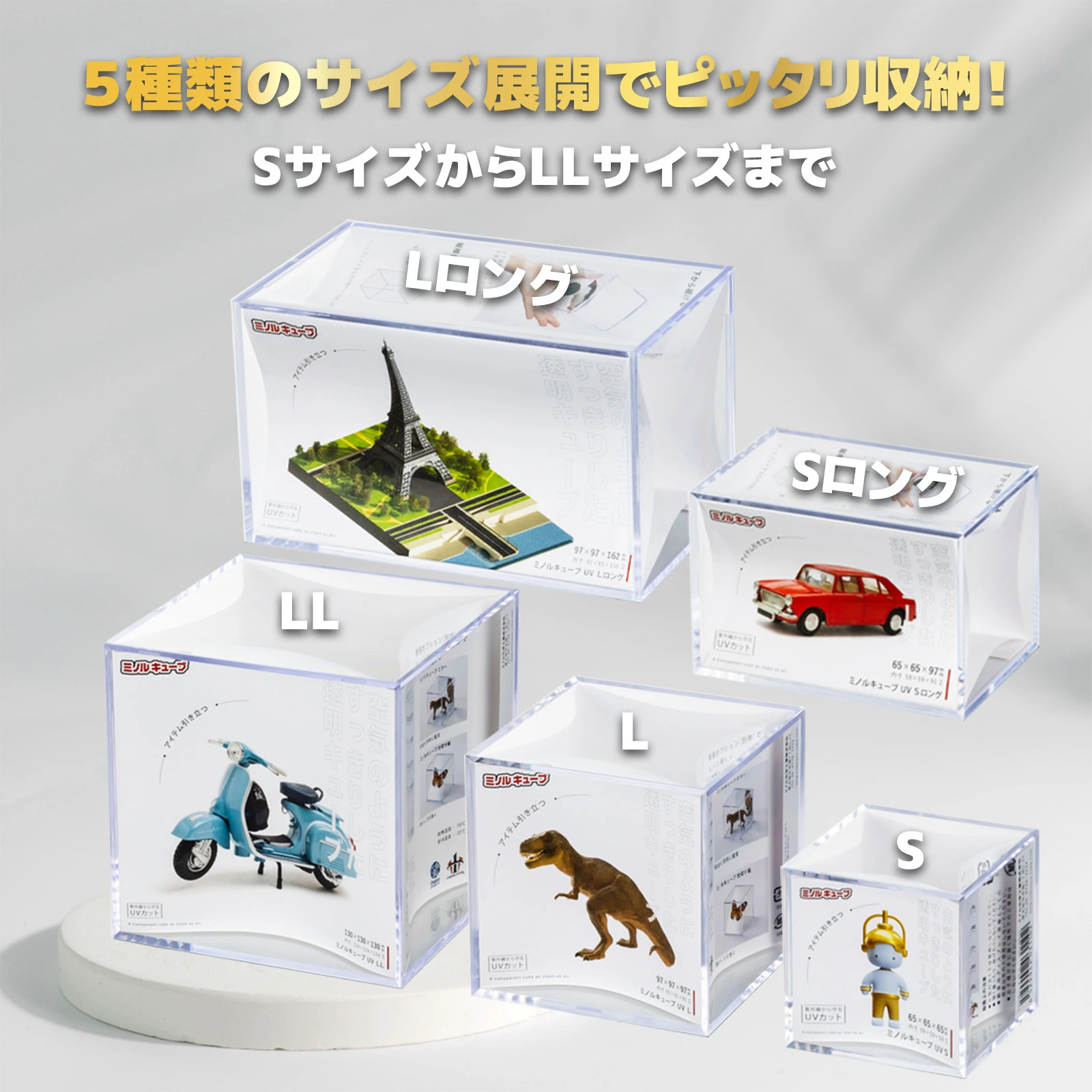フィギュアや模型のコレクションケース、アーティスト活動をされている方が作品を展示や保管するケース、記念グッズのケースやギフトボックス、店頭ポップやディスプレイとしても活躍しています。プリザーブドフラワーを入れて眺めるのも素敵です。