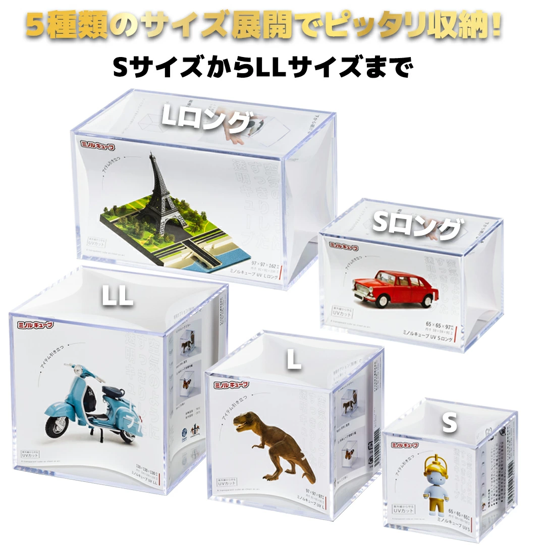 フィギュアや模型のコレクションケース、アーティスト活動をされている方が作品を展示や保管するケース、記念グッズのケースやギフトボックス、店頭ポップやディスプレイとしても活躍しています。プリザーブドフラワーを入れて眺めるのも素敵です。