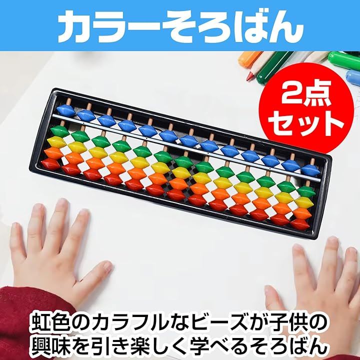 「暗算力アップに役立つカラーそろばん」 視覚的に数を理解しやすいため、暗算力の向上に効果的。