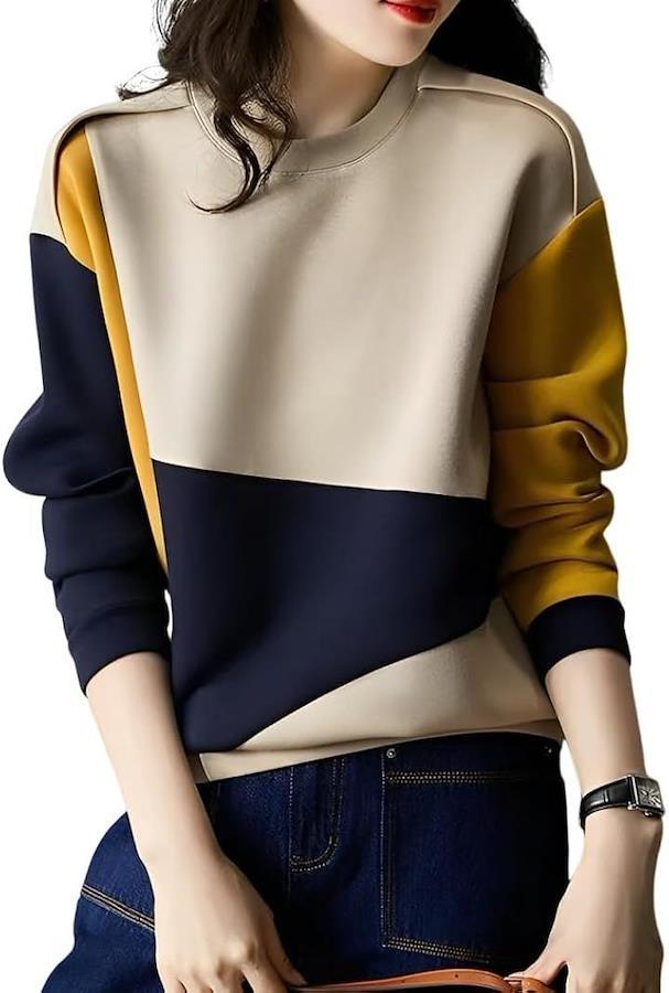 Color-blocked sweatshirt, long-sleeved pullover, stylish top for women, autumn/winter.