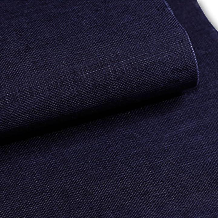 リネン(亜麻)100%・平織生地、カラー:濃い紺色(ダークネイビー)。