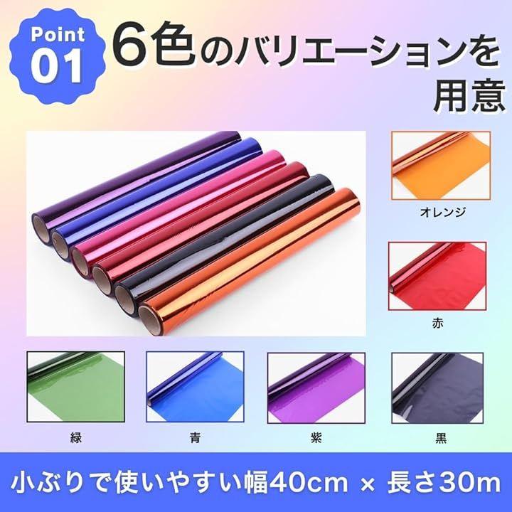 幅40cm 長さ30m 紫・オレンジ・緑・青・赤・黒・オーロラの7色からお好きな色をお選びください。