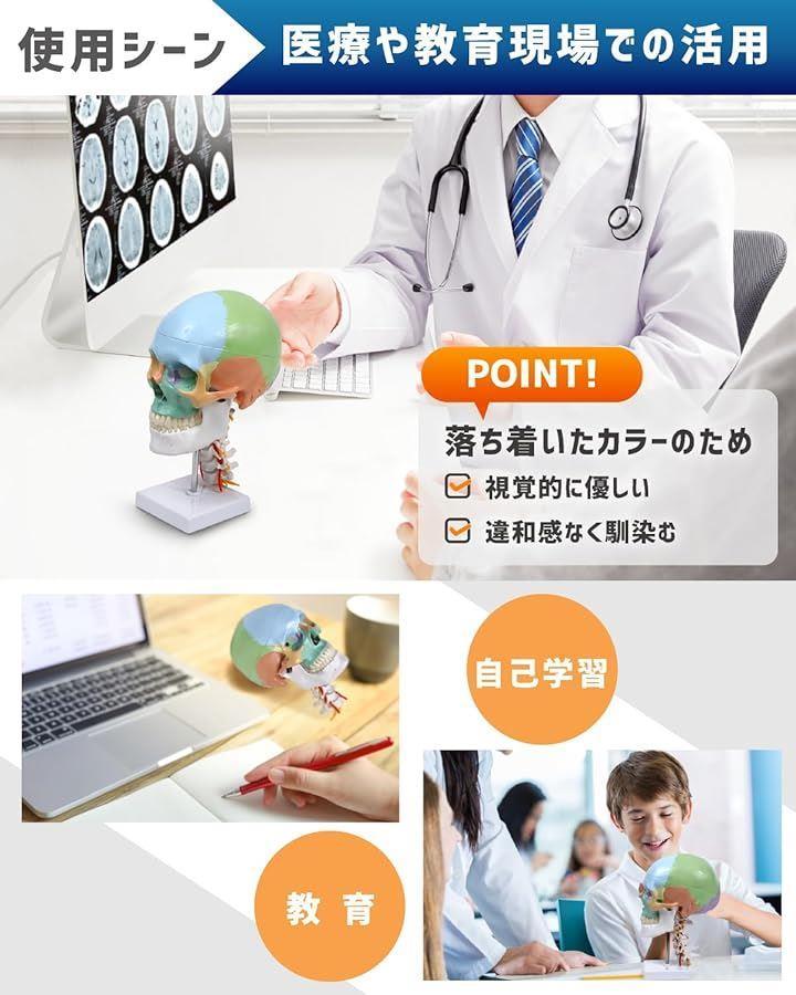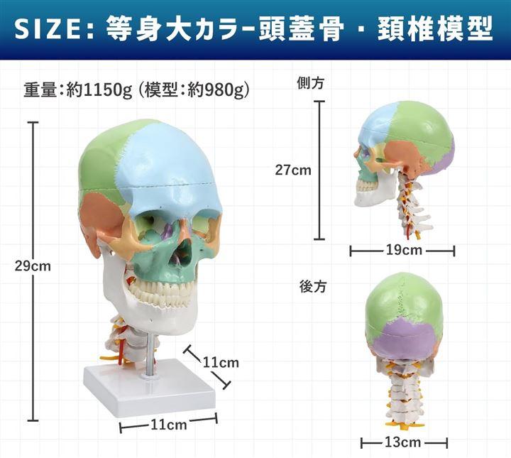 サイズ:頚椎頭蓋模型 幅13cmx奥行19cmx高さ27cm 重量 約980g(土台支柱込みで約1150g) 原産国:中国