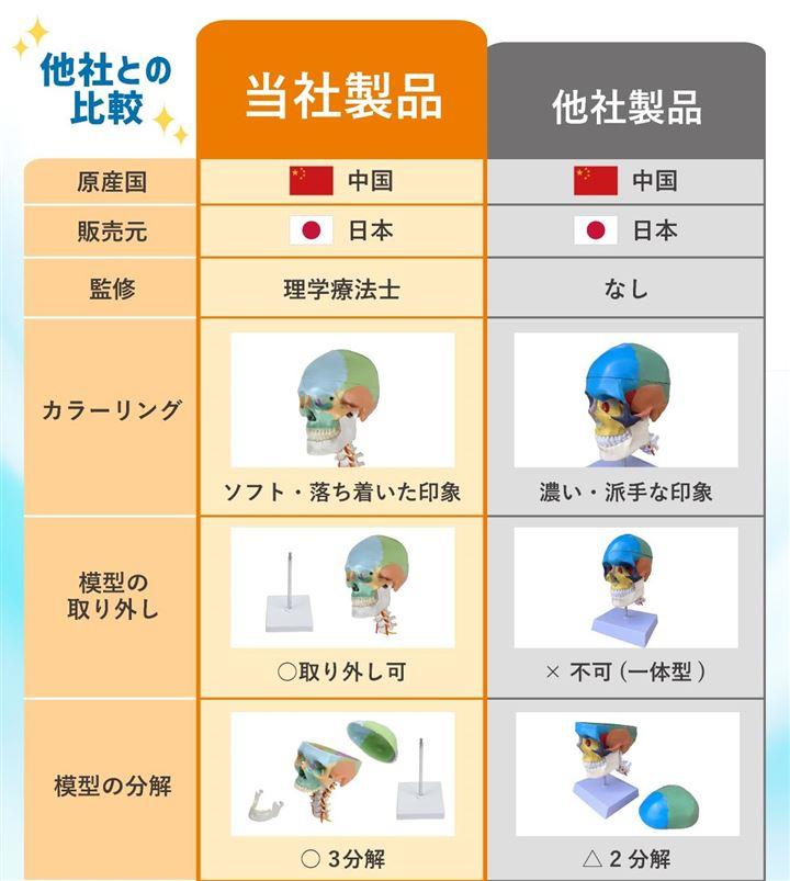 頭蓋骨部分は部位別にカラー分けされており視覚的に理解しやすくなっています。