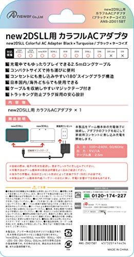 AC adapter compatible with many game consoles!An AC adapter that matches the color of the new2DSLL.This AC adapter is compatible with new2DSLL, new3DSLL, 3DSLL, 3DS, 2DS, DSiLL, and DSi units.Features a foldable and adjustable plug.Foldable and movable plug with 90 degree angle and 180 degree changeEasy to charge with a cable length of 8.2 ft (2.5 m).Comes with Velcro for compact storage. Convenient to carry around.Can be used overseas.100-240V 50/60Hz A safe design with a tracking prevention plug.Model Number: ANS-2D015BT AC adapter compatible with many game consoles! Compatible with new2DSLL, 2DS, new3DSLL, new3DS, 3DSLL, 3DS, DSiLL, and DSi Easy to charge with a cable length of 8.2 ft (2.5 m) Features a foldable and adjustable plug Compact and easy to carry