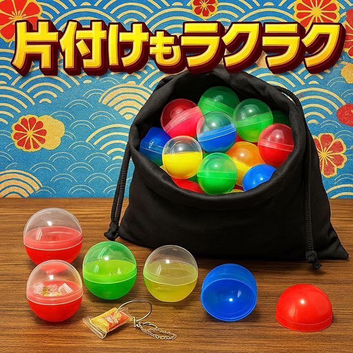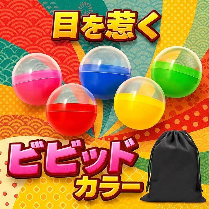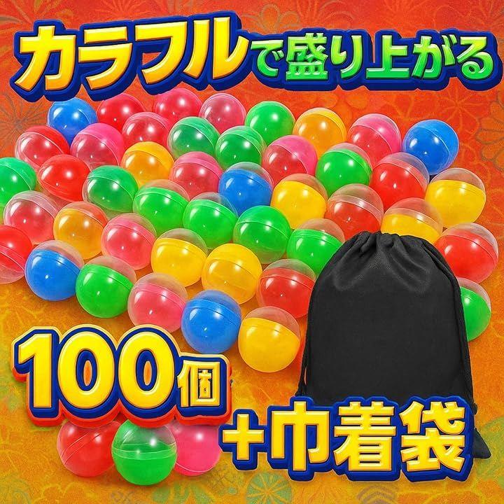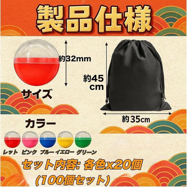 「商品仕様」カプセル直径:約32mm/セット内容:5色x20個(計100個)/付属:巾着袋1枚(約35x45cm・ブラック) *モニター環境により色味が多少異なる場合があります。