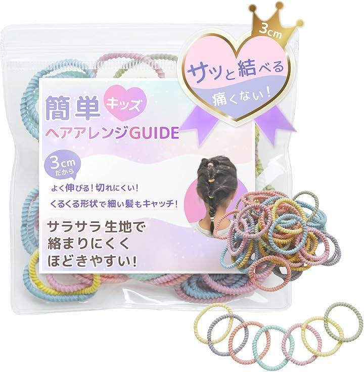 子どもが嫌がることなくスムーズに髪を結べちゃいます。 「90本+予備10本程度入っていて大容量。」従来品(2cm)より少し大きい3cmという絶秒な大きさだから、ベビーからキッズまで幅広く使っていただけます* 「かわいいマカロンカラーで全7色。