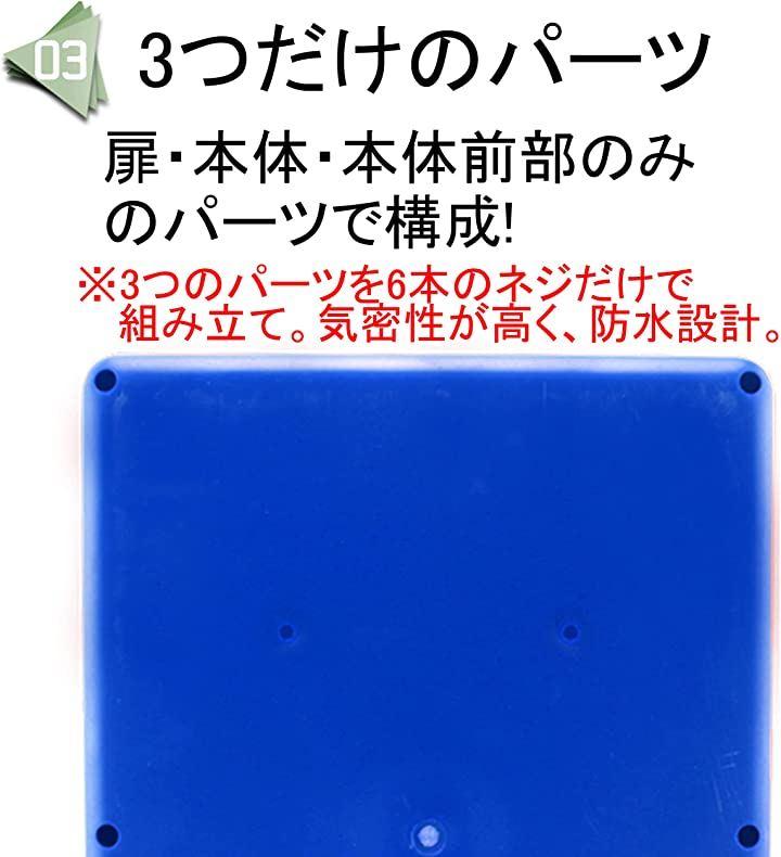 硬質プラスティック製で扉部・本体部・本体前面部のわずか3つのパーツで構成されているので、気密性が高くある程度の防水性能があります。