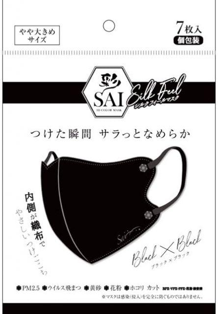 スタイル:やや大きめ◆商品名:彩立体シルクフィールマスクブラック×ブラック大きめ7枚