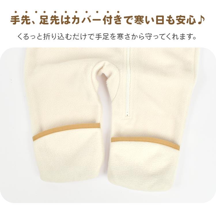 【Tiny Bear2 バンティング】ふっくらと暖かいフリース素材で仕立てたカバーオール。フロントは斜めファスナーを採用することで大きく開き、着替えやおむつ交換も楽々。手足や足先はカバーできる仕様で冷気の侵入を防ぐため、寒い日のお出かけも安心です。キュートな耳デザインをあしらい、冬のお出かけが楽しくなるアイテムです。